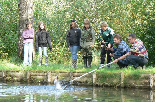 einem Elternteil oder dem Opa begleitet. Um ein schonendes und fachmännisches Fischen zu gewährleisten gingen die aktiven Mitglieder den Kindern