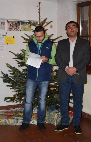 Weihnachtsbaum mit Beleuchtung aufgestellt und geschmückt.Ortsvorsteher Albert Beck hieß die Familien zu der kleinen Feier herzlich willkommen. Derzeit sind in dem ehemaligen Hotel 35