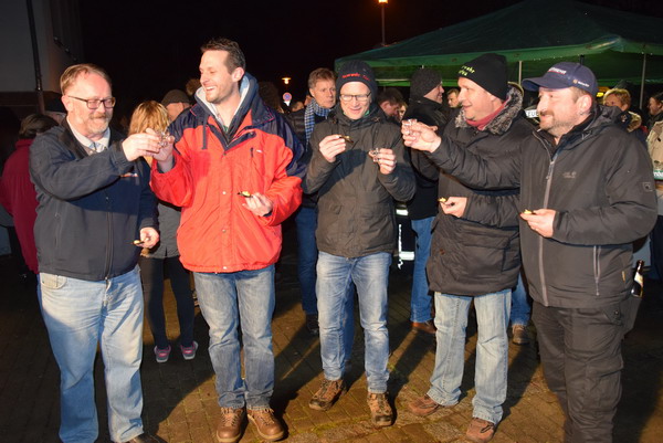 „Alle Jahre wieder ….“ hieß es am Vorabend des 4. Advent bei der Freiwilligen Feuerwehr. Bereits zum 4. Mal hatten die Floriansjünger zur Punsch- und Glühweinparty am Gerätehaus vor der Glatttalhalle eingeladen. Leider hatte das Wetter nicht so ganz nach Wunsch mitgespielt, denn der lang ersehnte Regen kam im falschen Moment. Deshalb blieben auch die aufgestellten Festgarnituren frei. Zwischenzeitlich hatte sich das Wetter wieder beruhigt. Die zahlreichen Gäste zogen es vor, lieber zu stehen. Dafür bildeten sich um den Verkaufsstand und um die aufgestellten Stehtische ganze Trauben von Menschen. Unter die Besucher aus der Bevölkerung hatten sich auch zahlreiche Feuerwehrkameraden aus dem Stadtgebiet und der Umgebung gemischt. Teilweise wurde der Besuch der Veranstaltung in der stockdunklen Nacht sogar zu Fuß in Angriff genommen. Für weihnachtliches Flair sorgten ein strahlender Weihnachtsbaum sowie die aufgestellten Feuerkörbe. Eine kleine Abordnung vom Musikverein stimmte mit weihnachtlichen Weisen auf das bevorstehende Weihnachtsfest ein. Die Einkochautomaten dampften und die Helfer hatten alle Hände voll zu tun. Groß war die Nachfrage nach einem heißen Punsch oder Glühwein (auf Wunsch mit „Schuss“). Zur Stärkung gab es „Heiße Rote“. Die Jugendfeuerwehr bot frische Waffeln an. Mit einem „Schwoba-Tequilla“ (einem Obstler, Schwarzwurst und Senf) stießen die Feuerwehrkameraden auf die gemütliche und gelungene Party an. Bis in den späten Abend hinein herrschte reger Betrieb.