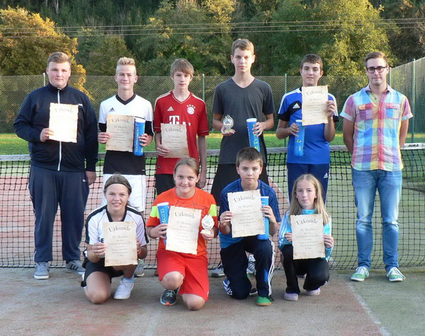 Von den insgesamt 15 Jugendlichen des Tennisclubs hatten sich zehn an den Vereinsmeisterschaften beteiligt. Bei herrlichem SpĂ€tsommerwetter wurden die TiteltrĂ€ger in zwei Altersgruppen mit jeweils fĂŒnf Teilnehmern ermittelt. Die Turnierspiele dauerten von 10 Uhr morgens bis abends um 18 Uhr. Zur StĂ€rkung wurden ĂŒber die Mittagspause im Sportheim Spaghetti serviert. Gespielt wurde jeweils nach dem Modus âJeder gegen Jedenâ. Eindrucksvoll gewann Julia Schreiber in der Gruppe der Knaben und MĂ€dchen alle ihre Spiele und wurde souverĂ€ne Vereinsmeisterin. Platz zwei belegten gemeinsam die BrĂŒder Martin und Stefan Weigold. Platz vier konnte Anna-Lena Weigold vor Leonie Schweikert erringen. Bei den Junioren beherrschte Manuel Schweikert das Teilnehmerfeld. Um die Spannung zu erhöhen, spielten sie nach der Gruppenphase in einem Endspiel ihren Vereinsmeister aus. Hierbei hatte in einem hochklassigen Spiel mit schönen Ballwechseln Manuel Schweikert mit 6:4 (wie auch schon beim Spiel in der Gruppe) knapp die Nase vorn. Platz drei ging an Nikki Gruhner. Ihm folgten Marc Kitzlinger und Magnus Pfendtner. Bei der Siegerehrung ĂŒberreichte Jugendwart Paul Reinisch allen Beteiligten eine Urkunde. Bis zum dritten Platz gab es als Preis eine Dose mit TennisbĂ€llen. Die Sieger erhielten zur Erinnerung jeweils einen Pokal. AnschlieĂend wurde zu einem geselligen Ausklang mit verschiedenen Snacks ins Sportheim eingeladen.