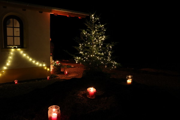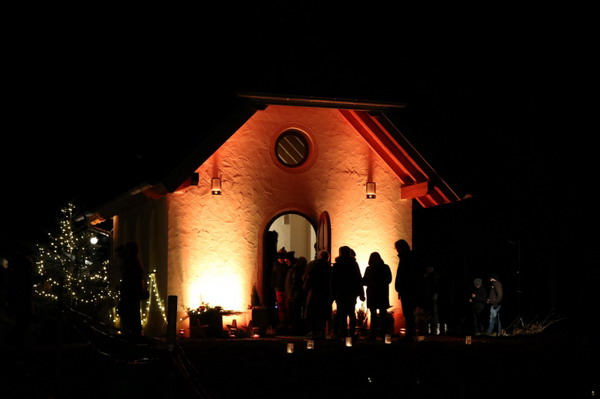 . Schon von weitem sichtbar war die in ein warmes Licht getauchte kleine Brachfelder Kapelle am Abend des zweiten Advents. Viele kleine Lichter säumten den Weg zum Platz im Freien, wo
