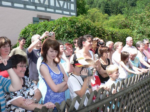 Vor dem Zaun des Kindergartens hatte sich eine große Menschentraube gebildet und wartete mit Film- und Fotoapparaten auf den großen Moment. Kindergartenleiterin Melanie