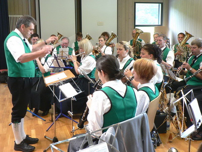 und die Sonne genossen. In der Halle spielte der Musikverein unter der Leitung von Lothar Grötzinger zum Frühschoppen auf. Bis über die Mittagszeit wurden die Besucher mit flotten Melodien unterhalten. Angeboten wurde ein
