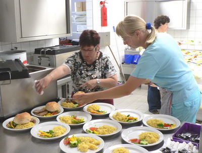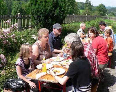 schmackhaftes Mittagessen sowie am Nachmittag ein großes Kuchenbüfett. Auf Grund des sommerlichen Wetters konnten die Kinder ihren großen Auftritt im Freien abhalten. Aufgeführt wurde das Singspiel „Die