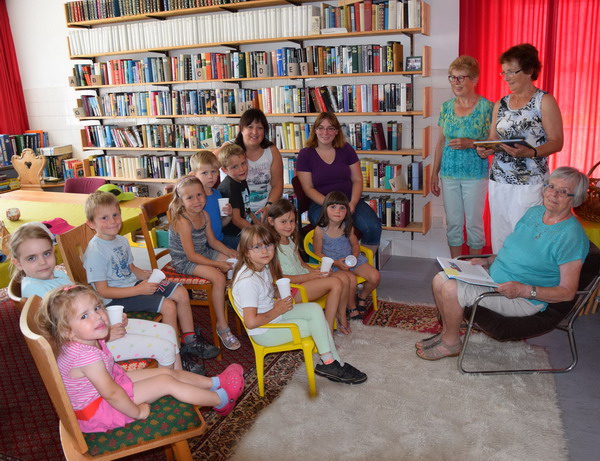 Viel Spaß hatten die Kinder vom evangelischen Kindergarten im Lesestüble. Wie auch die Jahre zuvor, hatten die Frauen vom Lesestüble die Kinder zu einem kurzweiligen Nachmittag eingeladen. Die kleinen Gäste mit ihren beiden Erzieherinnen Heidi Rapp und Monika Ziegler wurden von Ilse Knöpfle begrüßt. Zum Empfang gab es bei den hochsommerlichen Temperaturen als Erfrischung selbstgemachten Johannisbeer- und Kirschsaftsowie Apfelschorle. Zudem wurden immer wieder Obststücke und Gebäck gereicht. Die Frauen lasen abwechselnd aus Kinderbüchern kleine Geschichten vor. In einem Buch konnte sogar die Haut einiger Tiere und ihr Federkleid berührt und gestreichelt werden. Schnell wurden in einem anderen Buch anhand der Bilder die Geschichten und Märchen erkannt und dazu textsicher die passenden Liedverse gesungen. Am Ende des Nachmittages durften sich die Kinder ihre Lieblingsbücher ausleihen und mit nach Hause nehmen.