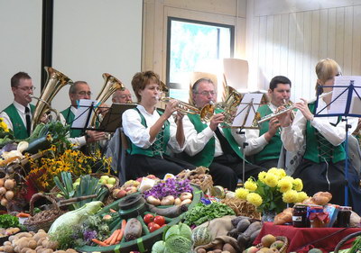 die Glatttalhalle eingeladen. Der Gottesdienst wurde vom Posaunenchor musikalisch umrahmt und vom Kindergarten mit einer Darbietung mitgestaltet. Zum Frühschoppen spielte anschließend der Musikverein auf.