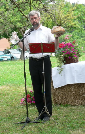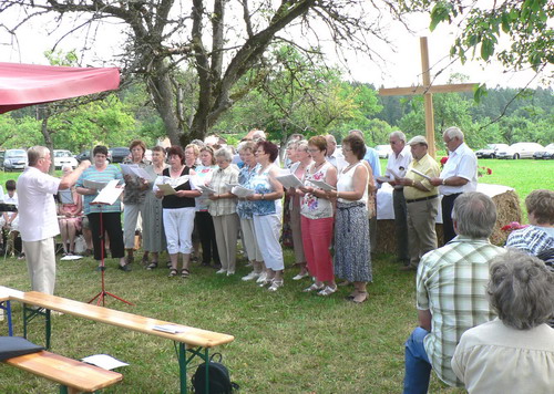 Einen sehr guten Besuch konnten die beiden Kirchengemeinden Hopfau und Dürrenmettstetten bei ihrem „Gottesdienst im Grünen“ auf dem Brachfeld verzeichnen. Darin verankert war auch gleichzeitig der Erntebittgottesdienst. Unter schattigen Bäumen auf der Wiese von Georg Sturm inmitten vom Brachfeld fanden die Kirchgänger bei hochsommerlichen Temperaturen Schutz vor der Sonne. Zudem standen Sonnenschirme parat. Petrus hatte jedoch ein Einsehen und bescherte meist einen mit Wolken bedeckten Himmel. Zudem verschaffte ein leichtes Lüftlein etwas Abkühlung. Statt mit dem üblichen Glockengeläut verkündete der Posaunenchor aus Hopfau/Dürrenmettstetten mit seinen Klängen den Beginn des Gottesdienstes. Pfarrer Christoph Knoke freute sich über den zahlreichen Besuch und dass alle Plätze belegt waren. Etwas Schöneres als eine gefüllte Kirche gäbe es nicht. Der Gottesdienst wurde zudem von dem Gesamtkirchenchor beider Gemeinden sowie den Konfirmanden mitgestaltet. Im Hinblick auf die bevorstehende Ernte wünschte Knoke vor allem den Landwirten eine gesegnete Erntezeit. Während des Gottesdienstes wurde eine Kinderbetreuung angeboten. Im Anschluss daran wurde zu einer kleinen Bewirtung mit Wurst vom Grill sowie Kaffee und Kuchen (auch zum Mitnehmen) eingeladen um noch etwas miteinander ins Gespräch zu kommen. Der Erlös vom Kuchenverkauf war für die Pfadfinder, die Kollekte für den Notfonds des Bauernwerkes bestimmt. Pfarrer Thomas Buchner bedankte sich bei allen Helfern und Kuchenspendern, die zum Gelingen des ersten Gottesdienstes im Grünen auf dem Brachfeld beigetragen haben.