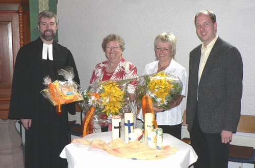 Das Bild zeigt Pfarrer Christoph Knoke, Hilde Kreidler, Ellen Wegenast und Tobias Klautke als Laienvorsitzender vom Kirchengemeinderat.