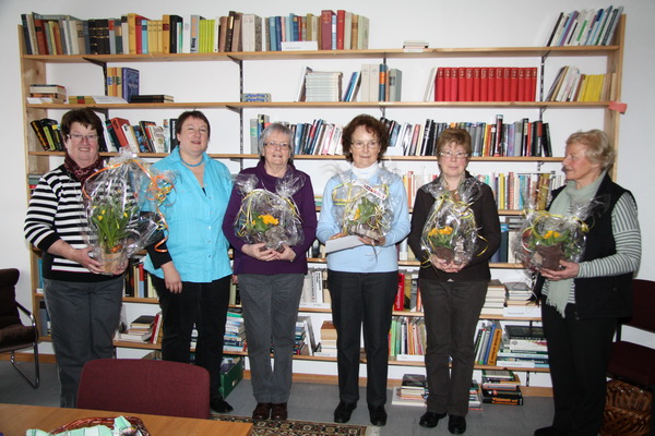 Nicht mit leeren Händen kam Ortsvorsteherin Daniela Wittig zur kleinen Feierstunde. Sie bedankte sich bei dem Bücherei-Team für die engagierte Arbeit mit Blumen und einem Geldbetrag fürs Spendenkässchen. Es sei schön, dass das Lesestüble während der Rathausöffnungszeit offen habe, so könne man auch „mal ein Schwätzle halten oder einen Kaffee trinken, das gehört auch dazu“, äußerte Wittig ihren Dank.