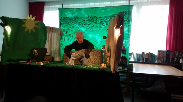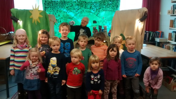 Bilder: Die Jungen und Mädchen lauschen der Geschichte von „Frederick“, die Puppenspielerin Urte Struppe mit den Handpuppen erzählt.