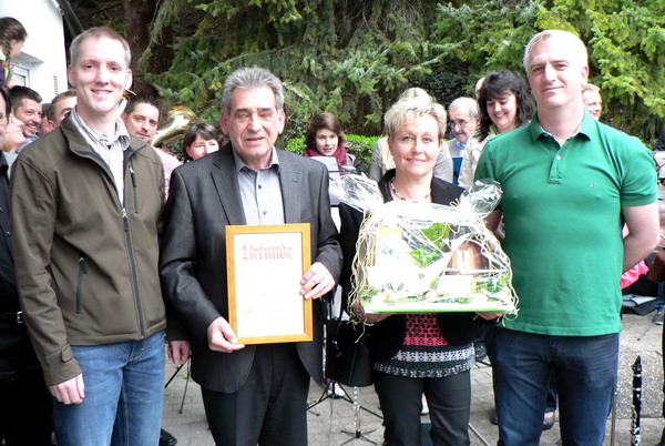 ausgezeichnet. Heute noch spielt er mit seiner Klarinette bei den „Oldies“ (den Hobbymusikern des Musikvereins) mit. Neben der Ehrenurkunde gab es noch einen originellen Gutschein. Ein Weingut im