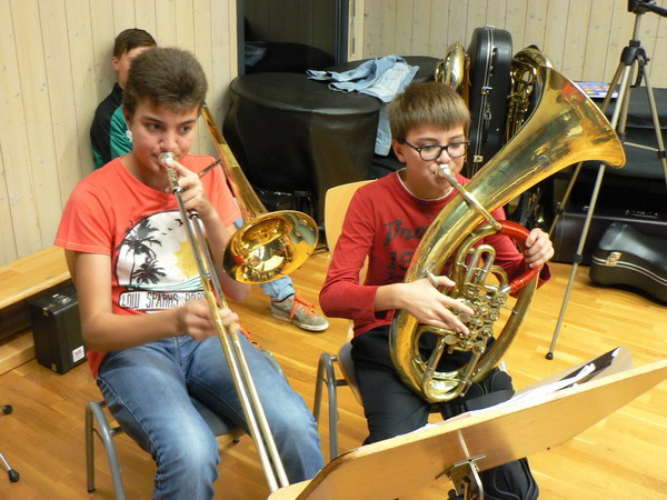 das âBlechâ wie Zugposaune, Bariton und Trompete. Ferenc Guti (zugleich Dirigent der Aktiven) ist fĂŒr das âHolzâ wie die Flöten und Klarinetten zustĂ€ndig. Etwas aufgeregt fieberten die Jungmusiker ihrem