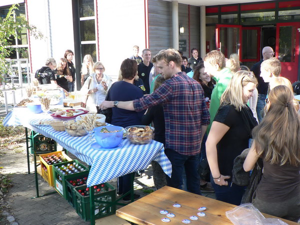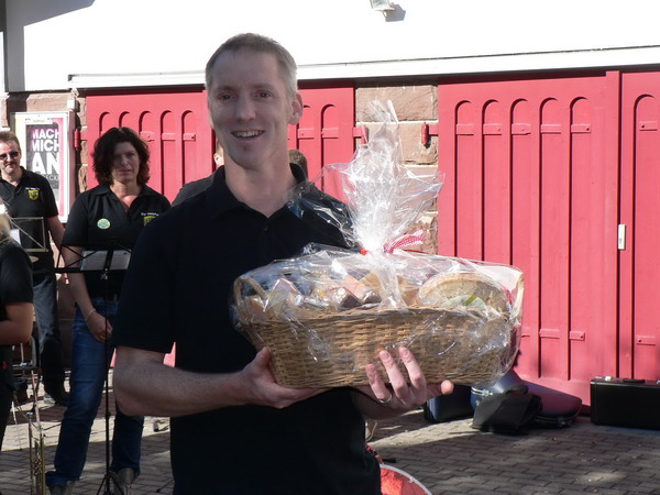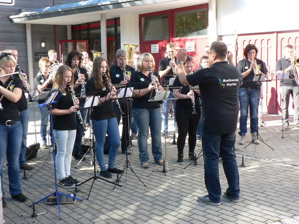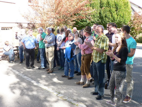 Bei strahlendem Sonnenschein begrüßte der Hopfauer Musikverein seine Patenkapelle aus Fußach am Nachmittag vor der Glatttalhalle auf musikalische Weise. Nach der knapp dreistündigen Fahrt wurden die Gäste aus dem „Dreiländereck“ mit erfrischenden Getränken sowie allerlei Knabbergebäck empfangen und auf das Wiedersehen angestoßen. Das letzte Zusammentreffen in Österreich lag bereits drei Jahre zurück. Der Vorsitzende Daniel Schrägle freute sich riesig, dass ihre Patenkapelle der Einladung gefolgt war. Mit einem Korb voller kulinarischer Spezialitäten bedankte sich Vorsitzender Christoph Mathis für die Einladung. Er hofft, dass es auch in Zukunft gelingt immer wieder zusammen zu kommen und diese Tradition aufrecht gehalten werden könne. Zur Pflege der Kameradschaft und Freundschaft hatte sich der Musikverein einiges einfallen lassen. Den Auftakt des Oktoberfestes gestaltete die Patenkapelle auf musikalische Art und Weise mit. Danach wurde miteinander gefeiert. Nach einer kurzen Nacht wurde zum gemeinsamen Frühstück in die Glatttalhalle eingeladen. Die anschließende Wanderung hinauf zum Wasserreservoir auf dem „Hörnle“ mit der frischen Luft tat gut. Der Aufstieg wurde mit einem herrlichen Ausblick auf Hopfau belohnt. Danach ging es hinab zu den Weiheranlagen der Angelfreunde Dobeltal. Beim „Seehotel“ gab es kleine Kostproben von geräucherten Forellen. Eine Besichtigung der Obsthalle mit wissenswerten Informationen rund um die Äpfel schloss sich bei der Duttenhoferschen Gutsverwaltung an. Interessant war der Blick in die Küche der beiden Fernsehköche Martina Meuth und Bernd Neuner-Duttenhofer. Bei der anschließenden Schnapsprobe wurde es den Musikern buchstäblich warm ums Herz. Das gemeinsame Mittagessen in der Glatttalhalle kam deshalb als Stärkung zur rechten Zeit. Die Geselligkeit kam an den zwei Tagen nicht zu kurz. Es wurde viel miteinander geplaudert und zum Schluss nochmals aufgespielt. Am späten Nachmittag trat die Patenkapelle wieder die Heimreise an.
