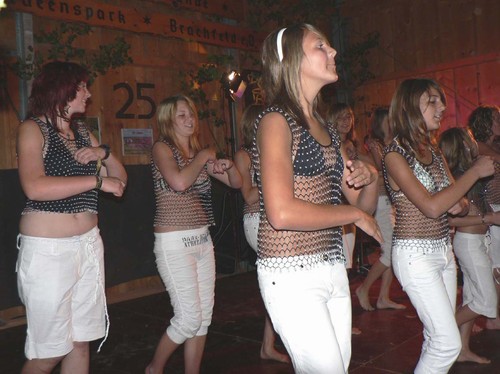 „Queenspark-Combo“, dass man auch ohne Instrumente Musik machen kann. Mit blasen in verschieden gefüllte Flaschen erzeugten sie Töne und „spielten“ einige Lieder. Die „Queenspark-Girls“ begeisterten durch einen Showtanz. Als