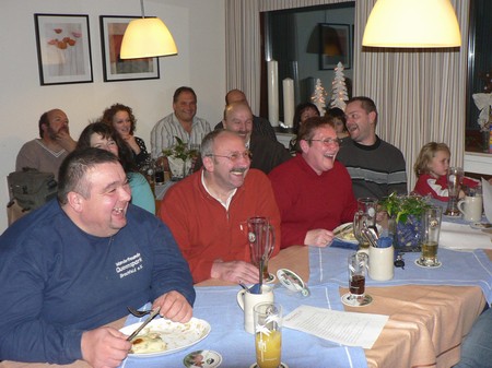 bei Reinhard Schulze mit einem Geschenkkorb. Zur Überraschung der Mitglieder zeigte Klaus Kretschmann noch einen Film der diesjährigen Hockete. Darin hatte er auch eine Menge von Bildern eingearbeitet und sie mit Blasmusik unterlegt. Wer