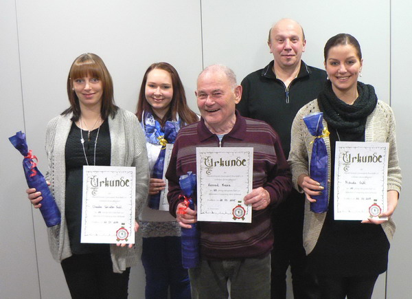 Vorsitzender Patrick Guhl konnte aus beruflichen Gründen nicht an der Hauptversammlung im Hotel-Landgasthof „Brachfeld“ teilnehmen. Deshalb gab Reiner Schrägle als zweiter Vorsitzender einen kurzen Rückblick und zog eine positive Bilanz. Das Ziel, die Mitgliederzahl auf 100 Personen zu schrauben, wurde erreicht, so Schrägle stolz und freudig. Fünf Personen waren dem Verein beigetreten. Angeboten wurden wieder zahlreiche Wanderungen für die ganze Familie. Leider spielte das Wetter nicht immer mit. Trotz des Mottos „Es gibt kein schlechtes Wetter – nur schlechte Kleidung“ mussten einige Wanderungen abgesagt werden. Höhepunkt war der Familienausflug ins Technikmuseum nach Sinsheim. Schriftführer Michael Sturm rief das vergangene Vereinsjahr nochmals ausführlich in Erinnerung und unterlegte seinen Vortrag mit interessanten Lichtbildern. Da außer den Mitgliedsbeiträgen keine Einnahmen zu verzeichnen waren, musste Kassiererin Eva Baumann einen Verlust vermelden. Um die Finanzen wieder aufzubessern und somit ihren Mitgliedern in punkto Kameradschaft und Geselligkeit wieder etwas bieten zu können wurde von der Vorstandschaft beschlossen, die all zwei Jahre durchgeführte Hockete grundsätzlich auf drei Festtage auszubauen. Dies wurde bisher nur bei „runden Geburtstagen“ praktiziert. Die hohen Fixkosten stünden in keinem Verhältnis zum Ertrag, rechtfertigte Schrägle die Entscheidung. Gleichzeitig bat er bereits jetzt um die Mithilfe aller Mitglieder. Die „Queenspark-Hockte“ wurde auf den 22. und 23. August terminiert. Nach einem Ruhetag wird am 25. August nochmals gefeiert. Das Fest werde nur dann wieder ein Erfolg, wenn alle an einem Strang ziehen, appellierte Schrägle. Als kleines Dankeschön an die Mitglieder und Helfer wird am Jahresende wieder zum Kameradschaftsabend mit Spiel und Spaß eingeladen. Auch für dieses Jahr wurde wieder ein interessanter Wanderplan zusammengestellt. An dieser Stelle dankte der zweite Vorsitzende allen Wanderführern, die eine Wanderung organisieren und durchführen. Dies sei keine Selbstverständlichkeit. Als kleines Dankeschön erhielten alle Wanderführer vom vergangenen Jahr eine Flasche Wein. Ortsvorsteher Albert Beck beglückwünschte die zwischenzeitliche „Großfamilie“ zu ihren abwechslungsreichen Wanderungen und Unternehmungen für die Mitglieder und Mitwanderer aus der Bevölkerung. Das Angebot werde gerne angenommen. Der Veranstaltungskalender für dieses Jahr deute auch wieder auf ein reges Vereinsleben hin. Für die Hockete wünschte Beck bereits jetzt viel Erfolg und gutes Gelingen. Der Verein stelle eine feste Größe im Hopfauer Vereinsgefüge dar und harmoniere bestens. In der neuen Broschüre „Die schönsten Wanderwege Sulz am Neckar“ wurden auch zwei Wanderwege in Hopfau aufgenommen. Bei der Ausschilderung des Wanderweges „Natur pur“ werden die Wanderfreunde der Ortschaftsverwaltung behilflich sein. Lothar Birk regte an, zukünftig in den Wanderplan auch wieder eine Bergwanderung aufzunehmen und die Fahrt mit dem Bus zu bestreiten. In früheren Jahren wurde bereits eine Zweitages-Gebirgswanderung angeboten. Für ihre langjährige Treue zum Verein wurden Michaela und Patrick Guhl, Sarah Noll, Claudia Schindler und Daniela Wittig für zehn Jahre mit der bronzenen Vereinsnadel ausgezeichnet. Silber für 20 Jahre erhielten Konrad Kranz, Christel Lembach und Helmut Ziegler. Seit 30 Jahren gehört Klaus Kretschmann den Wanderfreunden an und darf sich die goldene Vereinsnadel ans Revers heften. Neben einer Urkunde erhielt jeder Jubilar eine Flasche Wein. Leider konnten nicht alle Jubilare anwesend sein und ihre Ehrung in Empfang nehmen. Das Bild zeigt (von links gesehen) Claudia Schindler, Sarah Noll, Konrad Kranz, den zweiten Vorsitzenden Reiner Schrägle und Michaela Guhl.