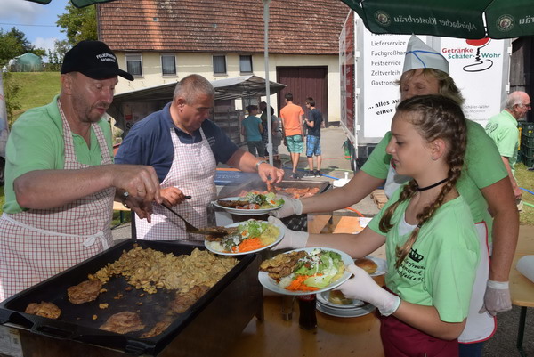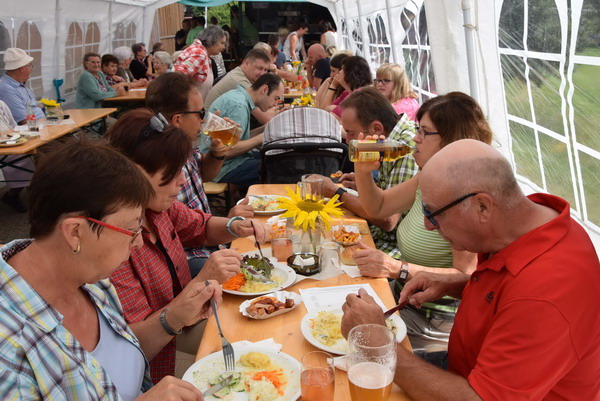 Frühschoppen und über die Mittagszeit spielte der Musikverein Hopfau zur Unterhaltung auf. Den Gästen wurde ein reichhaltiger Mittagstisch geboten. Die Helfer hatten alle