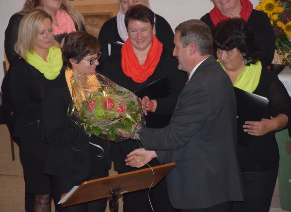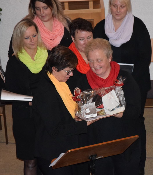 Konzertbesucher ein Geschenk. Die Chorleiterin freute sich über das tolle Geschenk und bedankte sich ihrerseits beim Chor für die Mühen, die sie den Sängern und Sängerinnen