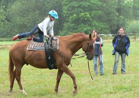 Reiterin ist Inhaberin des bronzenen Western-Reitabzeichens. Geschult wurden Hilfegebungen an die Pferde und das Lenken um Hindernisse. Tipps gab es auch, wie man ein Pferd wieder zum Anhalten bringt. Viele Kinder