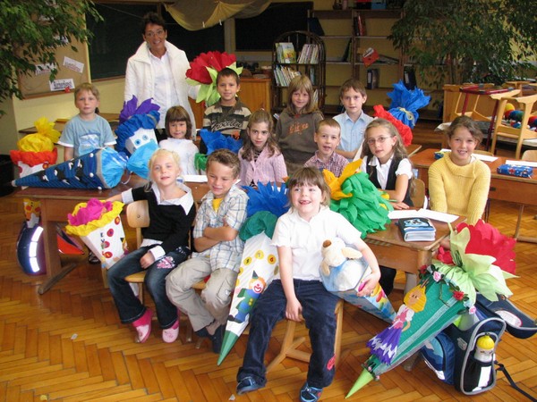 Foto: Die Schulanfänger in der Mettstetter Lindenschule mit Klassenlehrerin Petra Kaufmann.