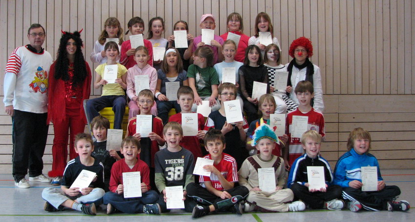 Sulz-Hopfau.hds. Traditionsgemäß veranstaltet die Grundschule Hopfau am "Schmotzigen Donnerstag" ihre Winterbundesjugendspiele in der Glatttal-Halle. Mit einem Sprung, mit Übungen auf den Matten am Boden, am Reck sowie am Barren oder am Pferd stellten die Dritt- und Viertklässler aus Hopfau und Dürrenmettstetten unter den Augen erfreuliche vieler zuschauenden Eltern ihre sportlichen Fähigkeiten unter Beweis. Während Rektor Karl Stephan und Lehrerin Elena Reisinger die Ergebnisse auswerteten und die Urkunden schrieben, überbrückte Lehrerin Denis Becker in der Halle mit den Schülern die Wartezeit mit verschiedenen Spielen. Bei den Drittklässlern erhielten Siegerurkunden Lena Kitzlinger, Laura Mutschler, Madeleine Sikeler, Benjamin Knoke, Niklas Gruhner, Alexander Sturm, Erik Hubert, Benjamin Müßigmann und Tim Meyer. Ehrenurkunden erturnten sich Raphael Wittig, Lukas Weigold und Kim Hebbel. Bei den Viertklässlern erhielten Siegerurkunden Marcia Hebbel, Etienne Seeger, Laura-Ellen Hicke und Manuel Schweikert. Magnus Pfendtner, Marius Wegenast und Fabian Breier erhielten Ehrenurkunden.