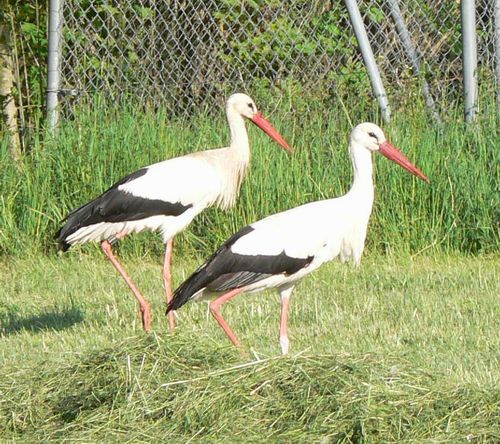 Aufregung und Freude herrschte am Mittwoch, als auf der gegenüberliegenden Wiese vom Baugebiet „Dorfwiesen“ ein Storchenpaar gesichtet wurde. Ob es nur eine „Zwischenlandung“ zur Stärkung eingelegt hat oder es sich gar im romantischen Glatttal ansiedeln möchte, ist noch nicht klar. Es ist auf jeden Fall nicht das erste Mal, dass in Hopfau „der Storch gekommen“ ist. In den beiden vergangenen Jahren gab es im „Dorfwiesen“ gleich zweimal Drillinge. Auch Zwillinge sind keine Seltenheit. Am Abend stolzierte das Storchenpaar auf der frisch gemähten Wiese neben den Sportgelände umher und ließ sich bei seiner Futtersuche selbst durch den nahen Straßenverkehr nicht aus der Ruhe bringen.