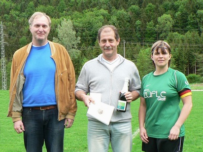 Im letzten Heimspiel der Saison verabschiedete der SV Hopfau seinen Damen-Trainer „Eddy“ Schuhmacher. Durch die 0:3 Niederlage gegen Meister FC Hardt war bereits vor dem letzten Spieltag der Abstieg der Damen-Mannschaft aus der Regionenliga, Staffel 5, in die Bezirksliga besiegelt. Vorsitzender Helmut Link bedankte sich für seine tolle Arbeit in den zwei vergangenen Jahren. Er bescheinigte Schuhmacher, trotz den widrigen Umständen einen super Job gemacht zu haben. Der eh kleine Kader war in der vergangenen Saison nicht gerade vom Glück verfolgt und musste vier Langzeitverletzte (darunter drei Kreuzbandrisse) verkraften. Hinzu kam die Babypause von zwei Spielerinnen. Diese Ausfälle waren nicht mehr zu kompensieren. „Eddy“ Schuhmacher hatte in seiner Trainerlaufbahn erstmals eine Frauenmannschaft trainiert und dabei viele neue positive Erfahrungen gesammelt. Die vergangenen zwei Jahre wolle er nicht missen. Der Abstieg schmerze, da die Spielerinnen für ihr großes Engagement nicht belohnt wurden und das Quäntchen Glück gefehlt habe. Zum Abschied überreichten ihm Helmut Link und Spielführerin Rebecca Renz eine Flasche Jubiläumssekt, eine Vereinschronik sowie einen Verzehrgutschein. Der Meistermannschaft aus Hardt gratulierte er zum Aufstieg mit einer Flasche Sekt und einem Blumenstrauß. Zudem gab es nach dem Spiel im Sportheim noch einen „Stiefel“.