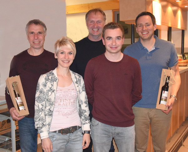 Das Bild zeigt (von links) Gerd Springmann, die neue Jugendleiterin Jenny Dieterle, den Vorsitzenden Helmut Link, Marcus Grötzinger und Denis Wahl.