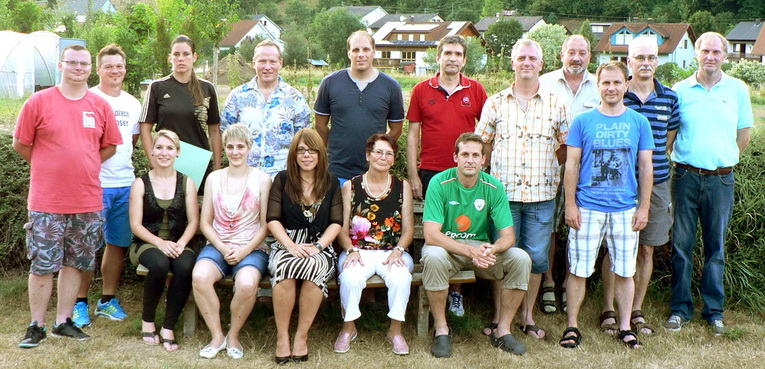 Das Bild zeigt (stehend von links gesehen): Jörg Springmann, Sascha Horr, Peggy Raisch, Arno Springwald, Thomas Guhl, Günter Mutschler, Jürgen Trick, Bernd Ziegler, Uwe Wößner, Reinhard Mönch und den Vorsitzenden Helmut Link. Auf der Bank machen es sich (von links gesehen) Jenny Eberhardt, Marina Bronner, Christiane Zürn, Rose Beilharz und Martin Schaible bequem.