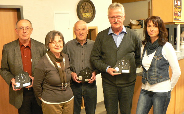 Das Bild zeigt (von links gesehen): Robert und Hedwig Glück, Gottlob Müller, Albert Beck und die stellvertretende Vorsitzende Sonja Höhn.