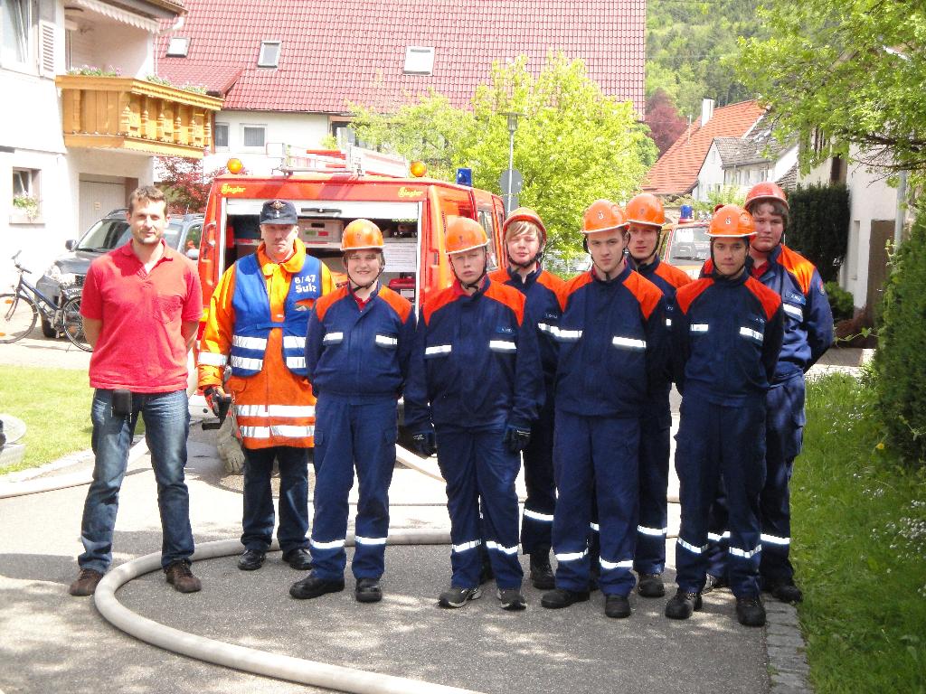 Nachmittags zeigte die Jugendfeuerwehr Hopfau einen Löschangriff mit Wasserentnahme aus dem Hydrant. Unter der Leitung von Reiner Schrägle (der zweite Jugendbetreuer, Joachim Lefevre war verhindert) zeigten die 7 Jugendlichen was sie in ihren Übungen gelernt hatten. Für diese reife Leistung ernteten sie viel Beifall und ein Lob des Abteilungskommandanten Martin Schaible.