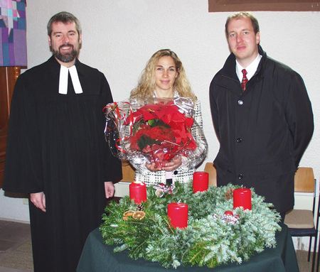 Kirchengemeinde wahrnehmen konnte. Zum Dank und als kleine Anerkennung überreichten ihr Pfarrer Christoph Knoke und Tobias