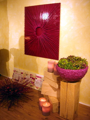 die Kombination Kunst und Floristik sehr nah beieinander liegt und sich sehr gut ergänzt. Für die Geschäftsinhaberin Katja Blöchle war es eine gute Gelegenheit außergewöhnliche Objekte wie beispielsweise ein bemalter