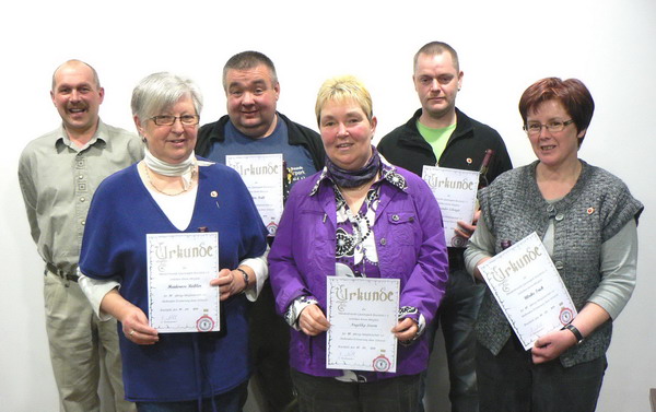 Das Bild zeigt (von links gesehen) den stellvertretenden Vorsitzenden Walter Sturm, Heiderose Rößler, den Vorsitzenden Peter Noll, Schriftführerin Angelika Sturm, Alexander Schrägle und Ulrike Trick.