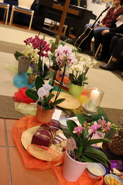 Kleine TĂŒtchen mit fair gehandelten Reiskörnern wurden an alle Anwesenden verteilt. Der Gedanke dabei ist, dass er zusammen mit eigenem Reis in den Kochtopf gemischt wird und sich so jeder buchstĂ€blich einmischen kann fĂŒr eine gerechte Gesellschaft. Um die Lebensbedingungen und Chancen von Frauen und MĂ€dchen zu verbessern, ist das erklĂ€rte Ziel der Projektarbeit des Weltgebetstages. Die Kollekte des Abends trĂ€gt dazu bei.